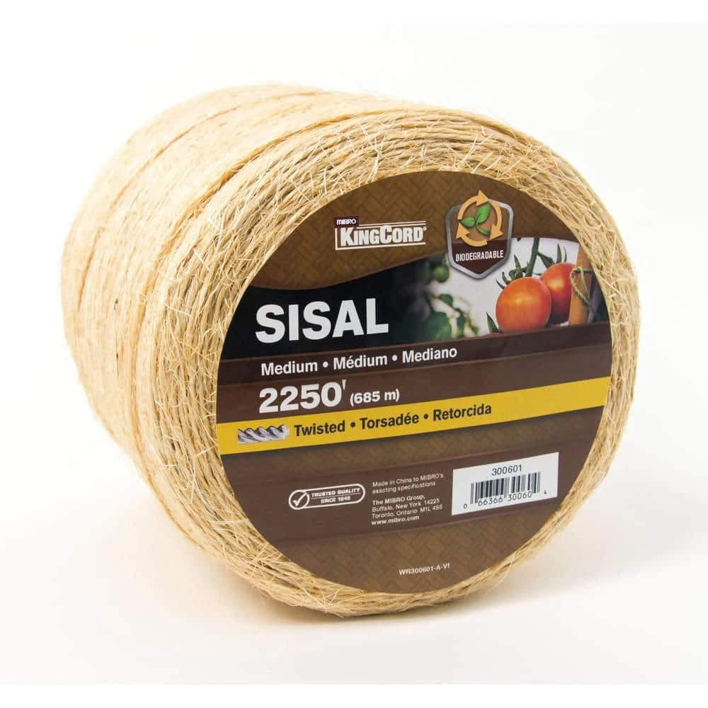 KingCord Sisal is a great medium-strength natural material that offers a good balance between cost and strength. Ideal for gardening, landscaping and other medium-duty outdoor projects. No special oils or chemicals are used in the production of KingCord sisal twine. It is pet safe and can be used for cat scratching posts and bird toys. Do not use for overhead lifting. Never exceed the Safe Working Load (SWL).