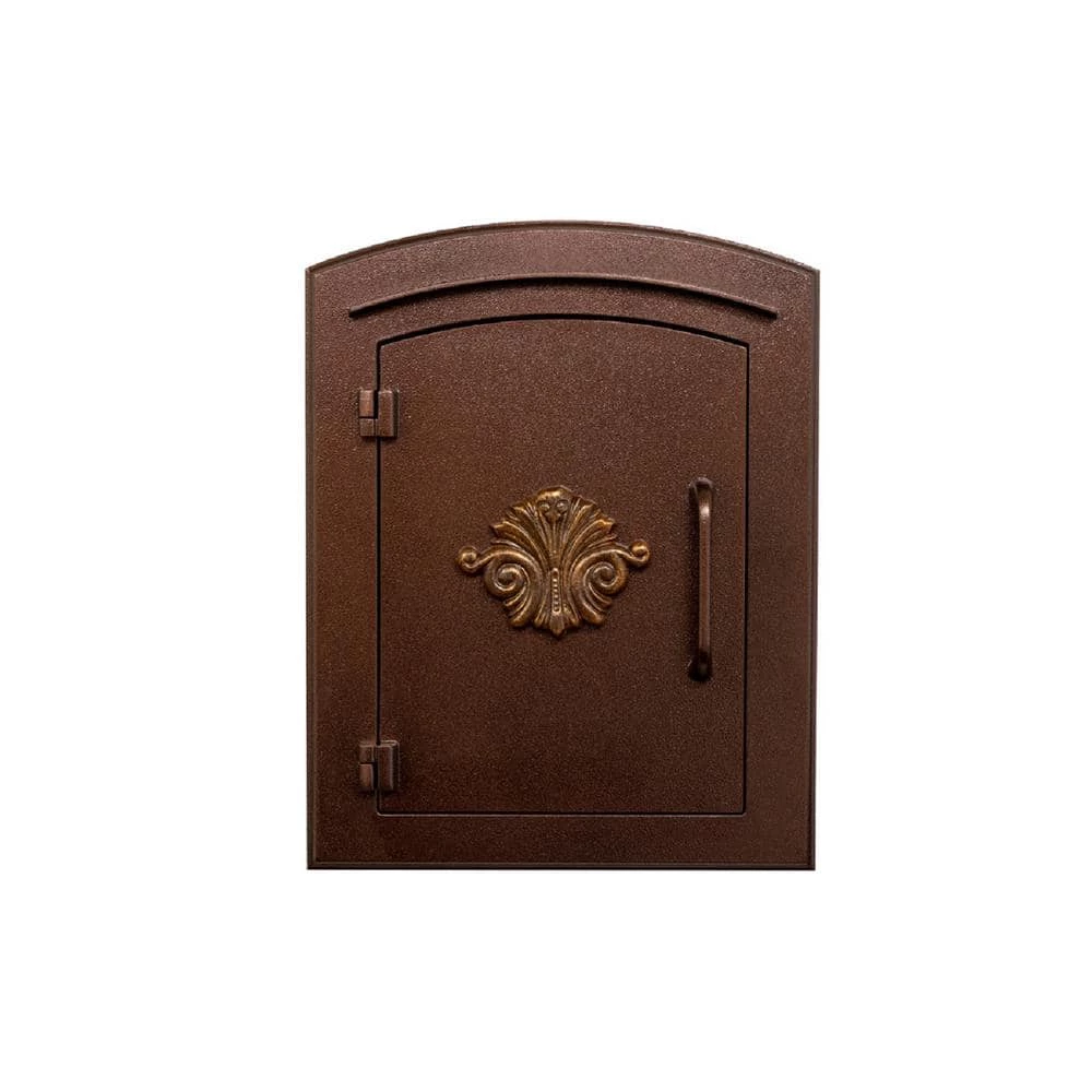 This decorative cast aluminum mailbox insert can be matched with an optional newspaper holder or address plaque. The doors have a tough powder coat finish, are sealed against the weather and it features a tough composite masonry box built to last. Oversized masonry box will hold up to 7-days of mail. Mailbox can be easily inset into a column, pilaster or wall. (Faceplate dimensions: 11 in. x 14.5 in.) Masonry can dimensions: 16 in. x 8.5 in. x 12 in.