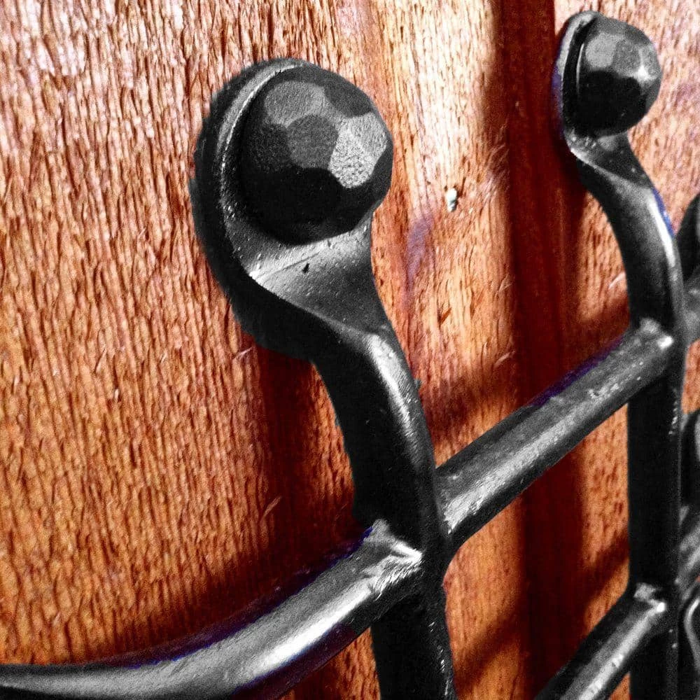 - Decorative hardware conceals lag screws