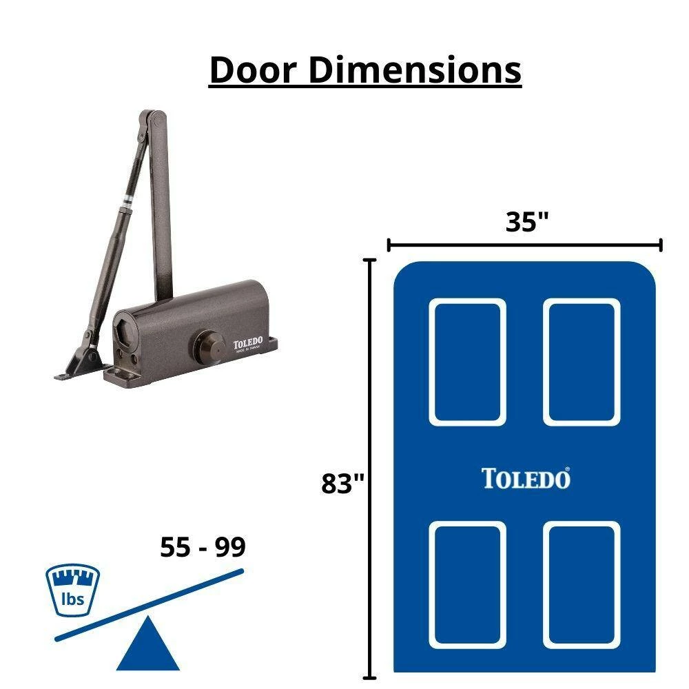 Toledo offers a well-integrated combination of craftsmanship and technology on all its products such as the TC102B. This light to medium-duty automatic door closer is suitable for residential and commercial use. Also, it can handle weights up to 99 lbs. Also, the closing and latch speed can be adjustable because it has a double valve system. This product is suitable for large, frequent rooms of the house, poolside activity rooms, small to medium businesses, and others. Finally, this model comes in 3 colors: gray, white, and bronze.