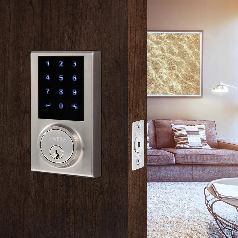 Keep your home protected with this Toledo Z-Wave deadbolt. It fits the standard backset from 2-3/8 in. to 2-3/4 in. metal or wood door with a thickness of 1-3/8 in. to 2 in. For convenient operation, you can use it with a regular key or keypad or go wireless. It can store up to 30 individual pass codes you can input with an integrated touch screen. To deliver safety, it offers an anti-bump system.