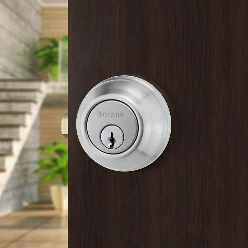 Protect your home with this Toledo Platinum Series Malaga single cylinder deadbolt. This pick and pry-resistant set comes with three keys and fits doors from 1-3/8 in. to 1-3/4 in. thick. For more safety, it offers an anti-bumping cylinder. Stainless steel construction makes it built to last.